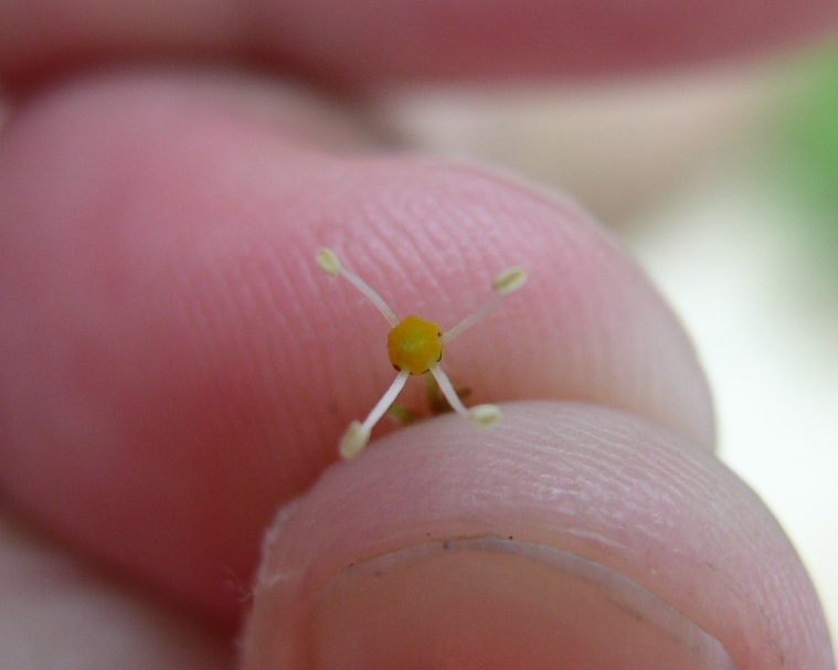 | close-up of the flowers | inflorescence a compact, compound panicle opposite the leaf |